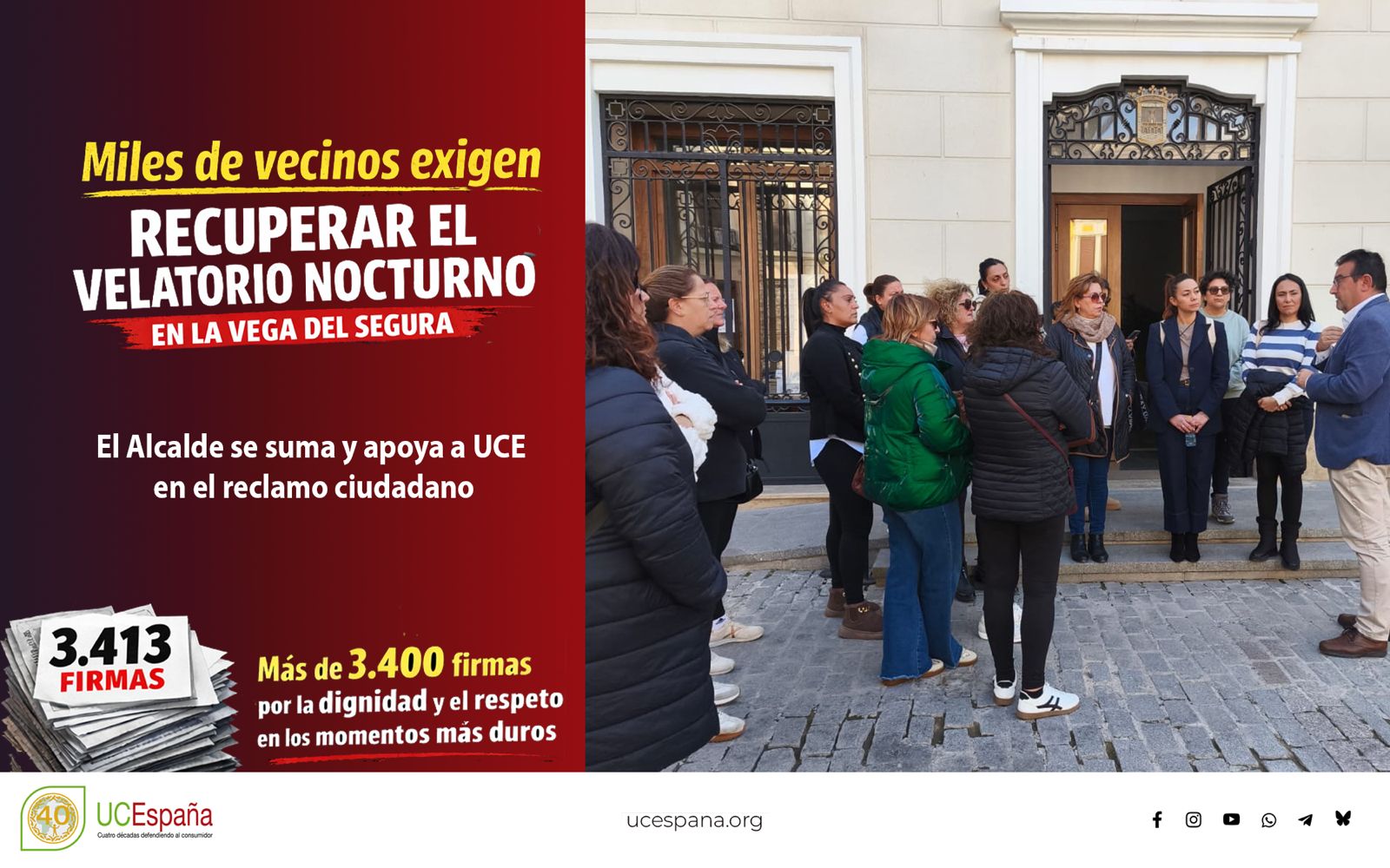 Más de 3.400 firmas reclaman dignidad y respeto para las familias en uno de los momentos más duros de su vida. El alcalde se une y apoya a UCE en el reclamo ciudadano.