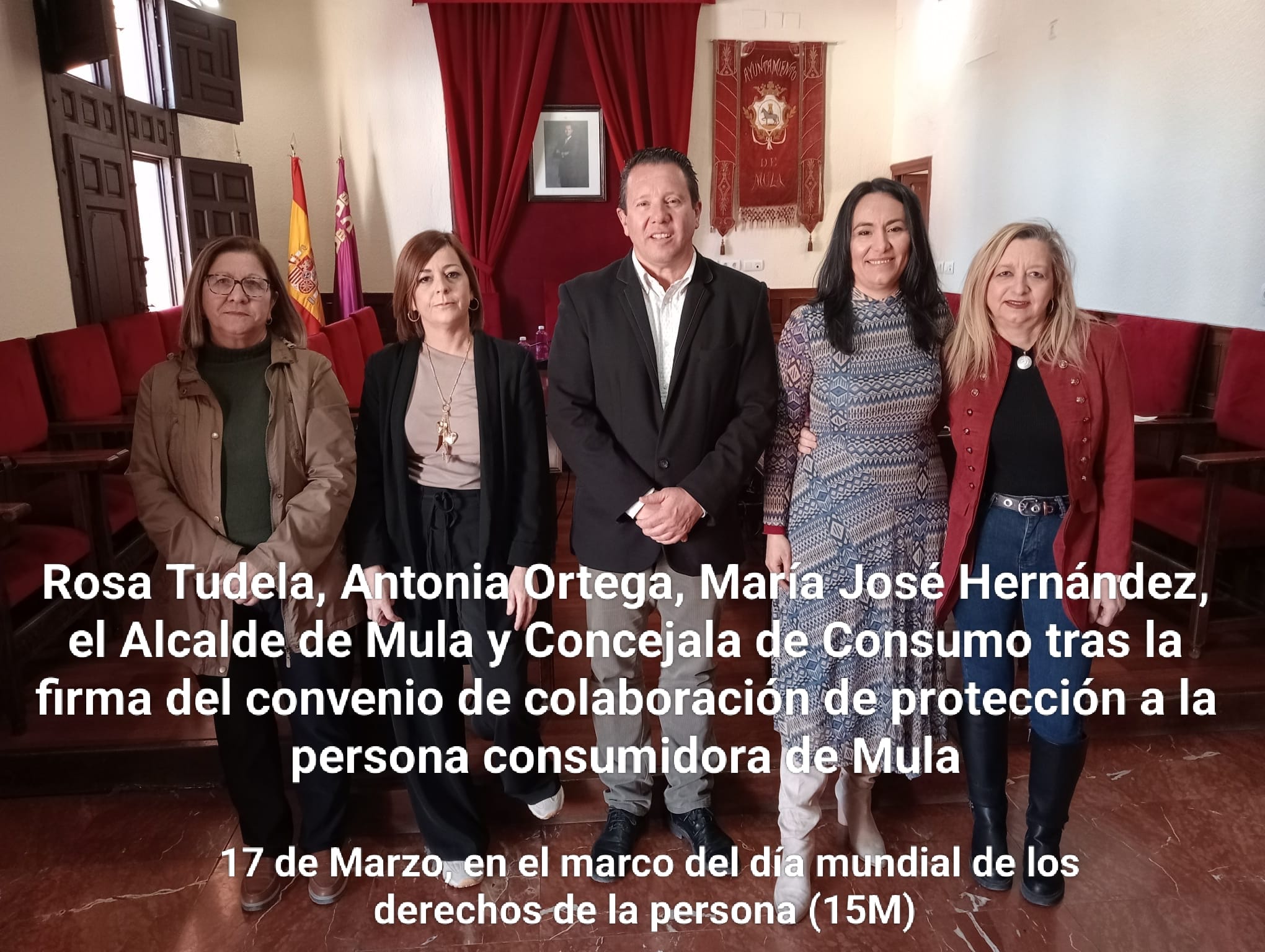 La organización UCEspaña Noroeste Río Mula ha firmado un convenio de colaboración con el Ayuntamiento de Mula que marca el inicio de una nueva etapa en la defensa de las personas consumidoras y sus familias en el municipio.