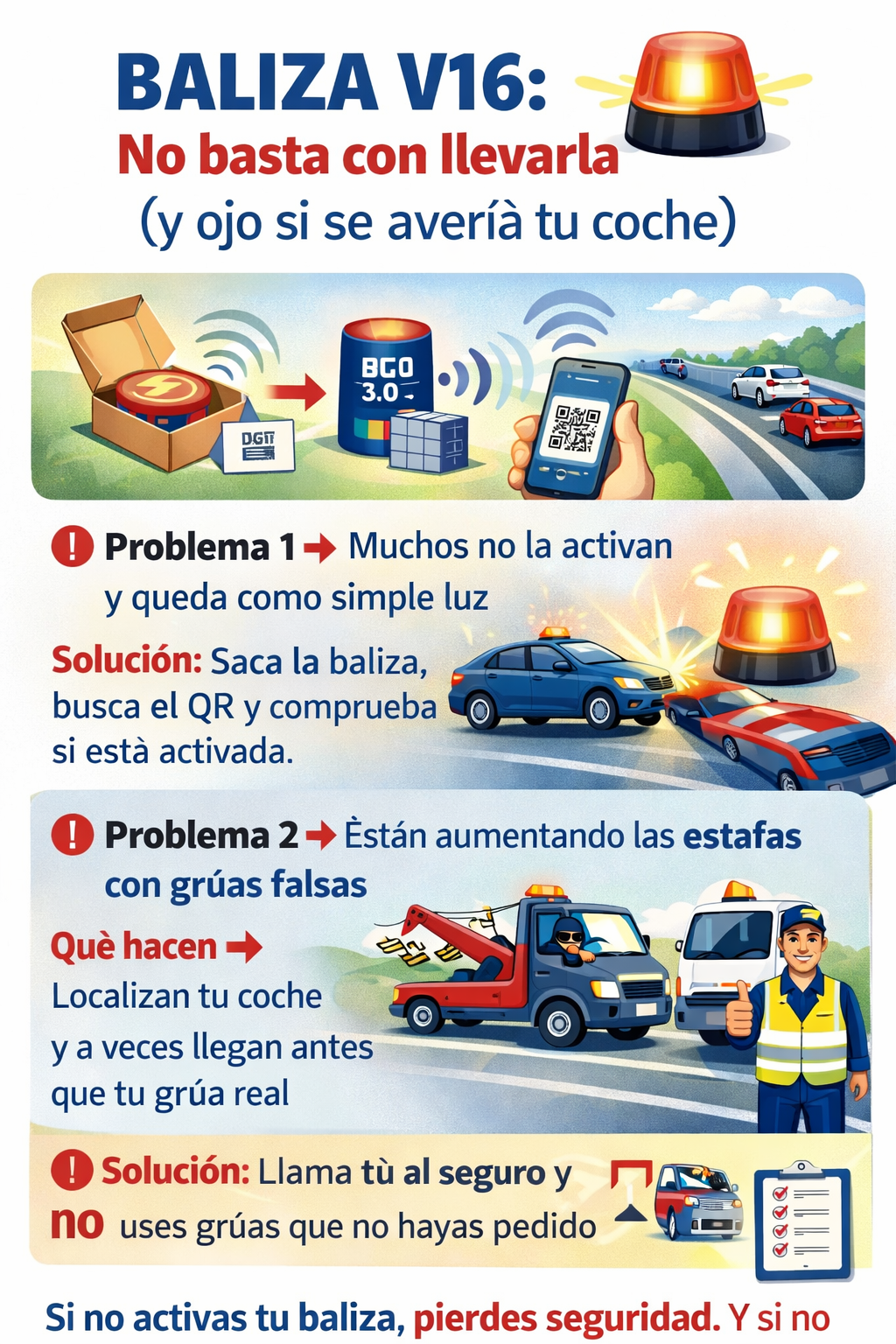 “Si no activas tu baliza, pierdes seguridad. Y si no verificas la grúa, puedes perder tu coche.”
